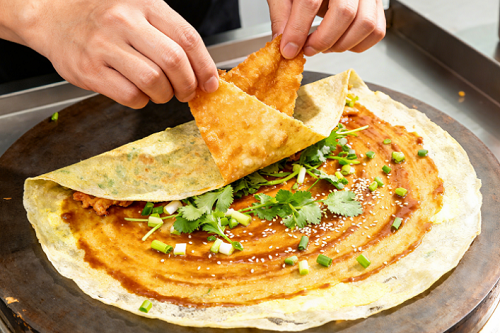 涡阳烙馍:用面粉和水调和成面团,摊在锅上烙熟,口感酥脆,香气扑鼻,可卷上各种蔬菜、肉类食用。